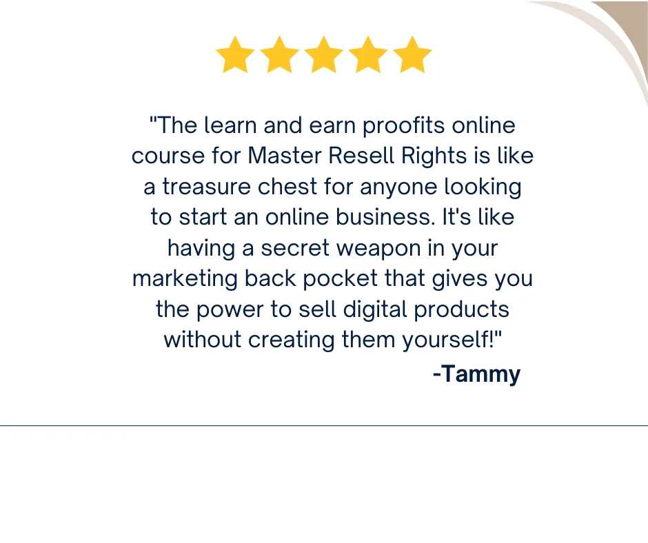 NO. This is one of the best parts of this course. You get all of the knowledge, not pieces of it, then are required to pay more to fill in the blanks! And NO monthly fees. With your ONE-time purchase, you receive digital product business training, A FREE community, and FREE 1 -1 Calls if needed for help. Your customers pay YOU directly for future sales, we do not take a dime of it when you resell.